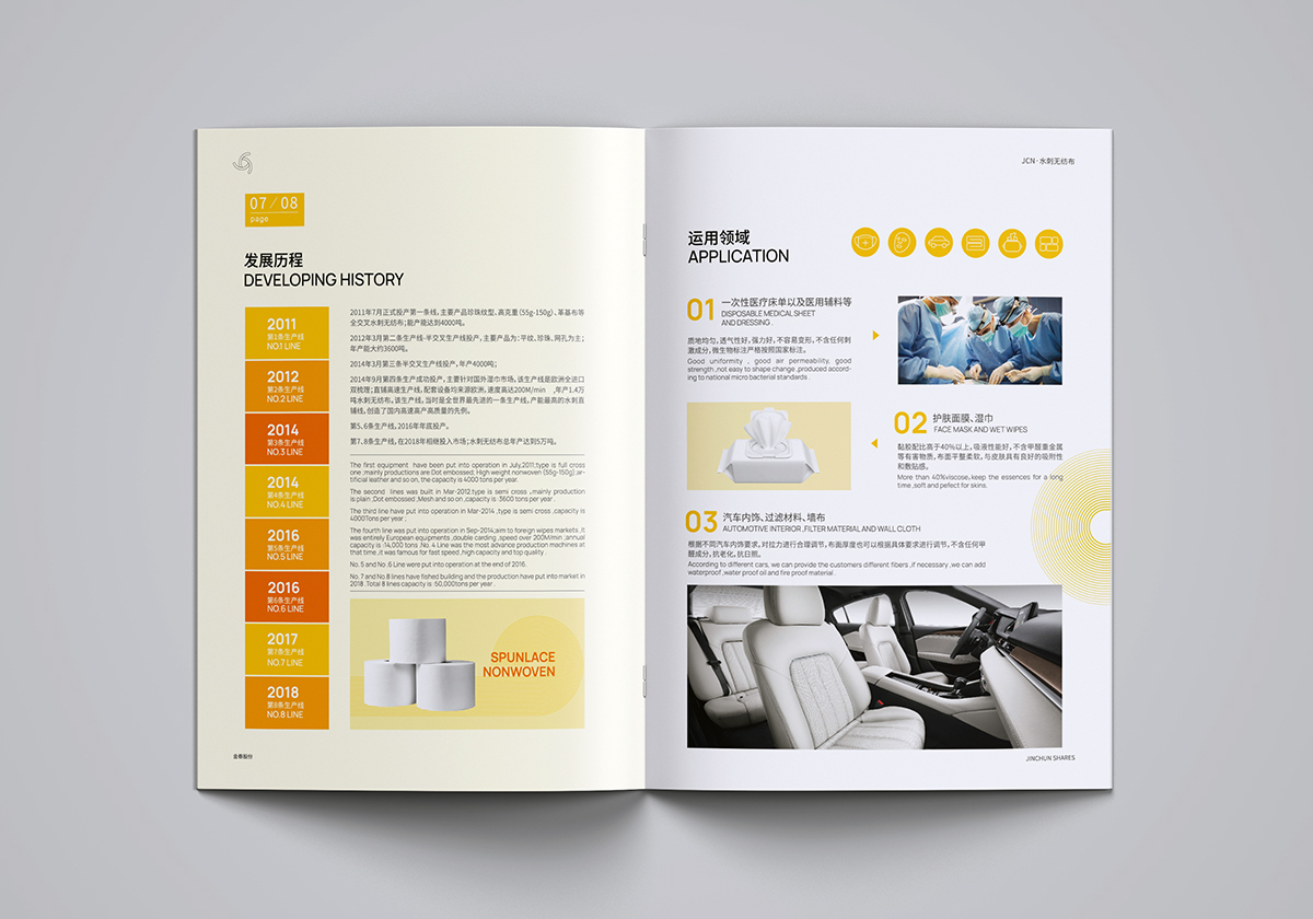 安徽金春无纺布股份有限公司(股票简称:金春股份,股票代码:300877),专注于无纺布产品的研发、生产和销售,是一家综合性强,产品多元化的新材料制造企业。无纺布产品性能优越,用途广泛,主要应用于湿纸巾、婴儿湿巾、妇女卫生用品、口罩用布、装饰材料、革基布、汽车内饰和医疗卫生用品等领域。