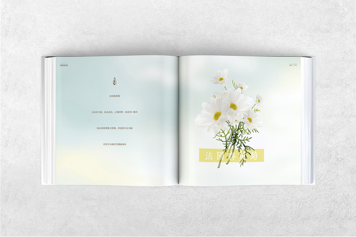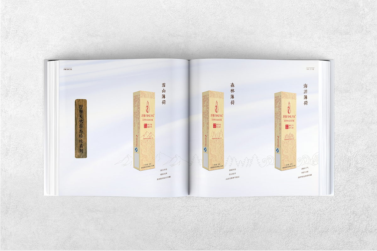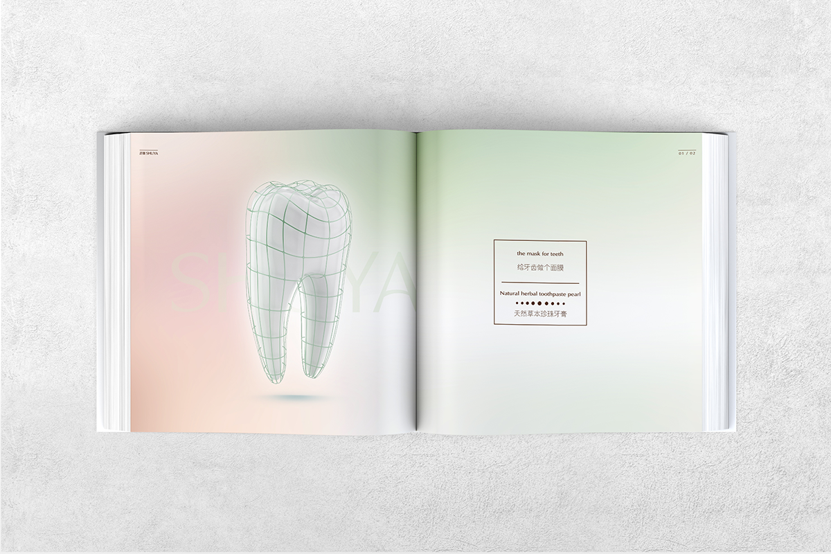 安徽抒雅日化有限公司合肥分公司为香港抒雅日化有限公司中国大陆地区唯一品牌运营商。公司成立于2013年,主要负责香港抒雅日化旗下轻奢口腔护理品牌抒雅牙膏在大陆地区的品牌运营及销售。抒雅牙膏,定位高端口腔护理品牌,传承香港经典牙膏配方,经过万春药业-抒雅口腔中心多年研发试验,萃取天然名贵中草药精华,打造极致奢华的口腔护理体验,同时有效改善中国人的口腔问题。 画册整体设计风格清新、简洁,以“草本珍珠”为主题深入介绍,把几种草本植物和珍珠的功效,对牙齿的好处,通过图文的形式加以传达,让草本牙膏的功效更深入人心。以图片为主的排版形式,视觉冲击力更强,受众的记忆深度更强。